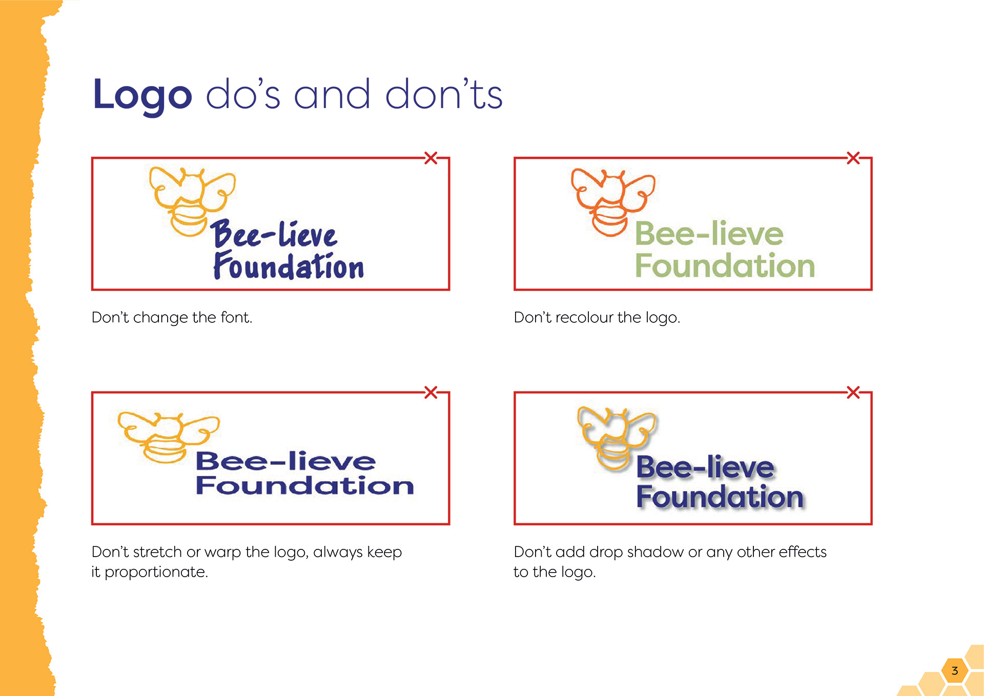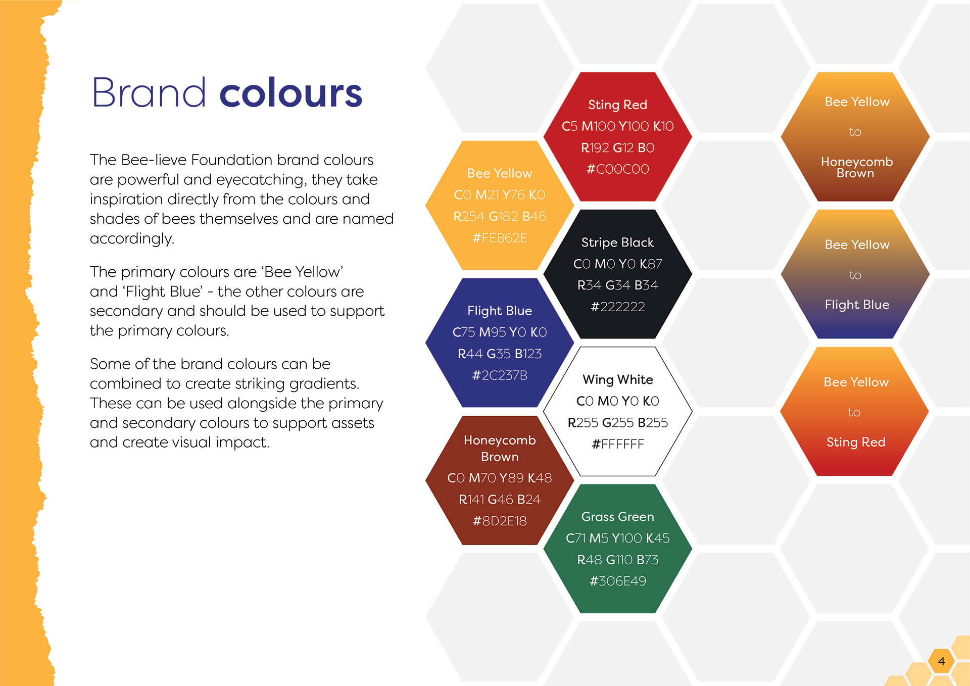 Development of a complete visual identity for the Bee-lieve Foundation, a young people's mental health charity.