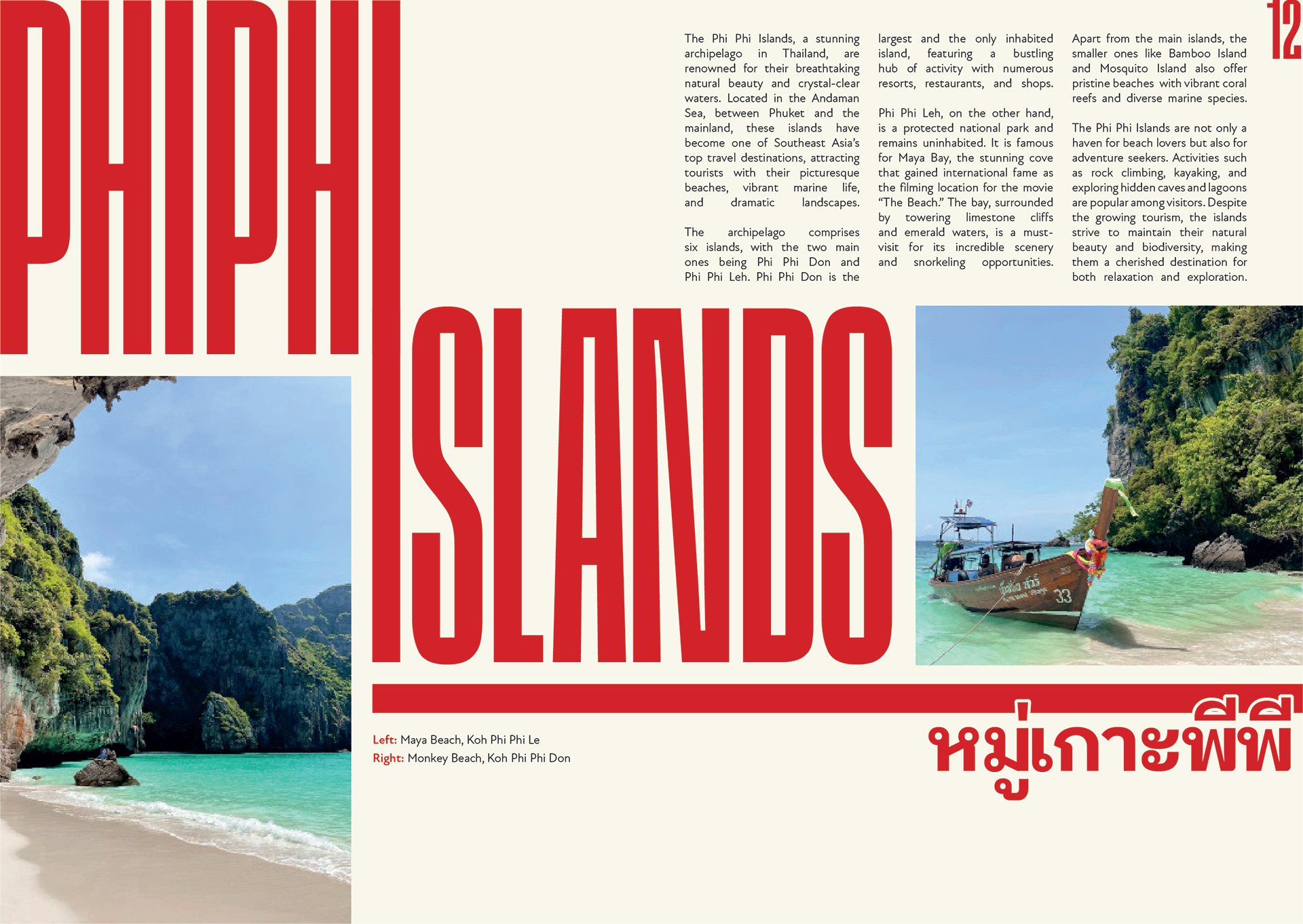 A personal project in which I created a travel zine using my own photography from a recent trip to Thailand. I wanted to explore Thailand’s culture and islands through bold typography, rich imagery, and dynamic layouts. Inspired by vintage travel posters and modern editorial design.
